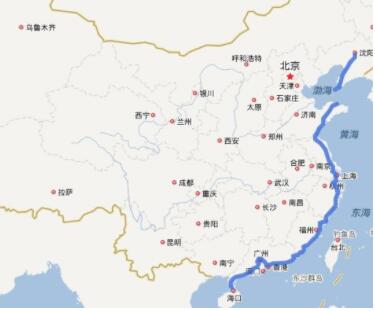 北起辽宁省沈阳市,南至海南省海口市,线路构成为原“五纵七横”时期的国道主干线同三高速公路(G010)的沈阳—连云港段、上海—海口段和国家重点干线公路嘉荫—南平公路连云港—上海段。